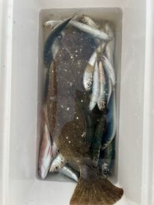 11月15日土曜日 ショート・体験フィッシング 執筆者 matsushin | 11月 17, 2025 | 体験フィッシング, 土曜日, 未分類 体験フィッシングでサビキ5目です アジやイワシが釣れてます ヒラメの外道が混じってます 初めての釣でヒラメが上がりました ありがとございました。