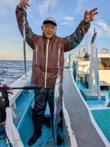 11月15日日曜日 タチウオ船 執筆者 matsushin | 11月 17, 2025 | 日曜日, 船釣り 今日はタチウオ船で出船です ジャンボが出てますね こちらもじゃんば混じって高釣果です でかいのがいます 良型ぞろいです タチウオ終盤ですがいいサイズのあがってます