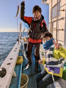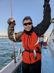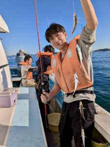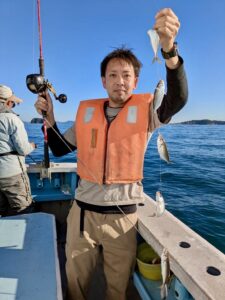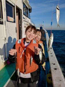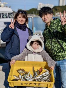 今日は午前便、午後便とショート体験フィッシング でアジ釣りで出船しました