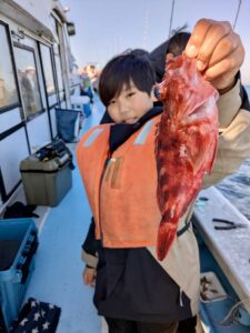 僕もでっかいカサゴをゲット